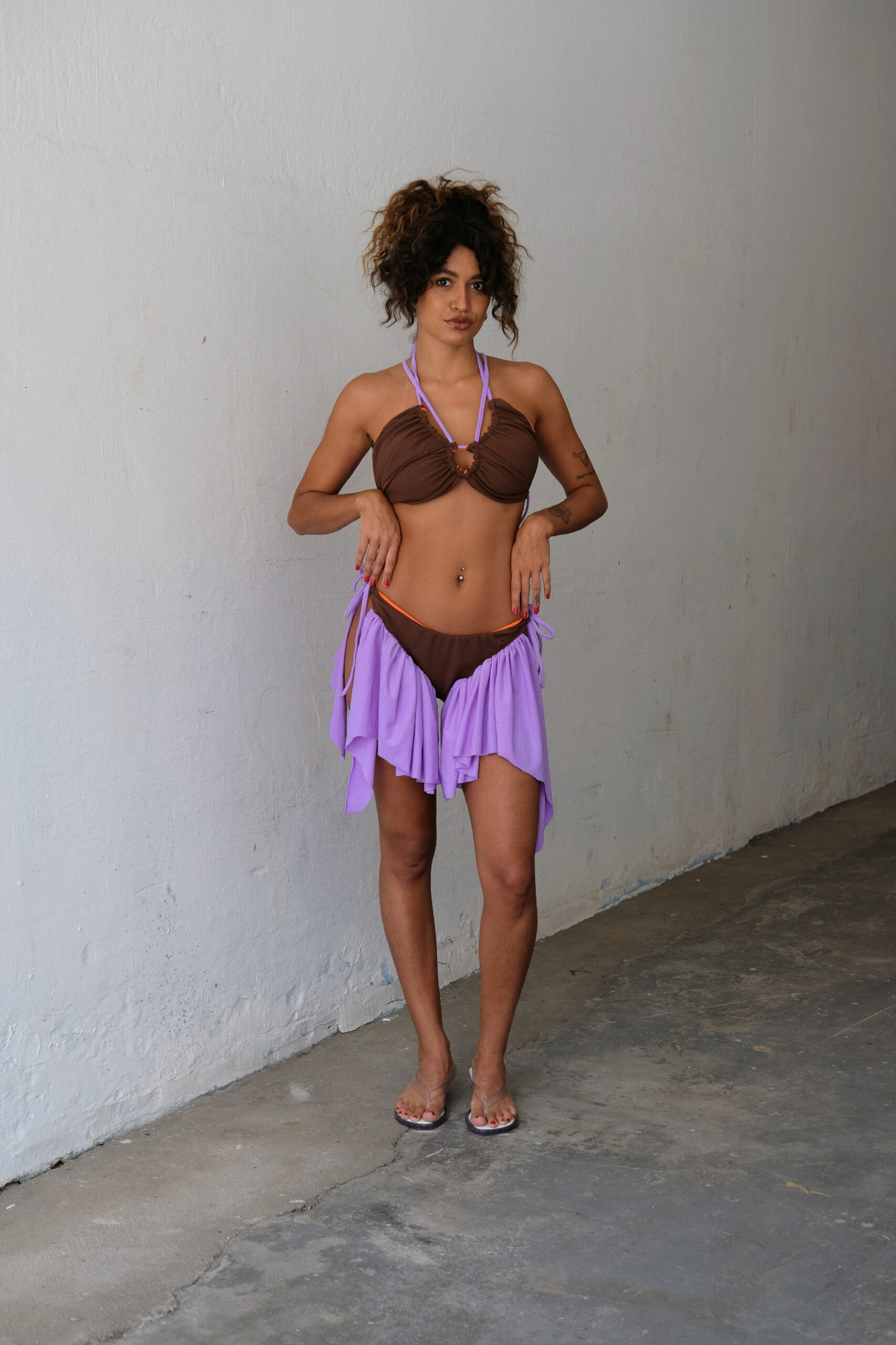 Peça desenvolvida a partir de tops e calcinhas de biquíni em tecido de poliamida com elastano.